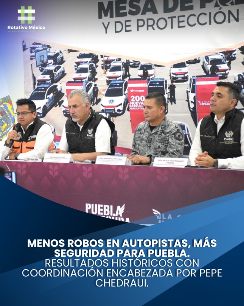 Disminuye robo en autopistas y fortalecen seguridad en Puebla bajo coordinación encabezada por Pepe Chedraui